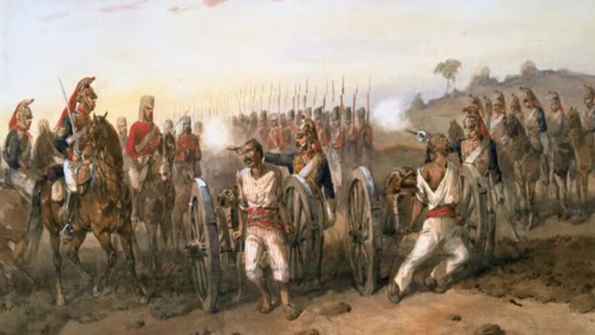 1857: Indian Mutiny against rule by the British East India Company begins with the revolt of the Sepoy soldiers in Meerut