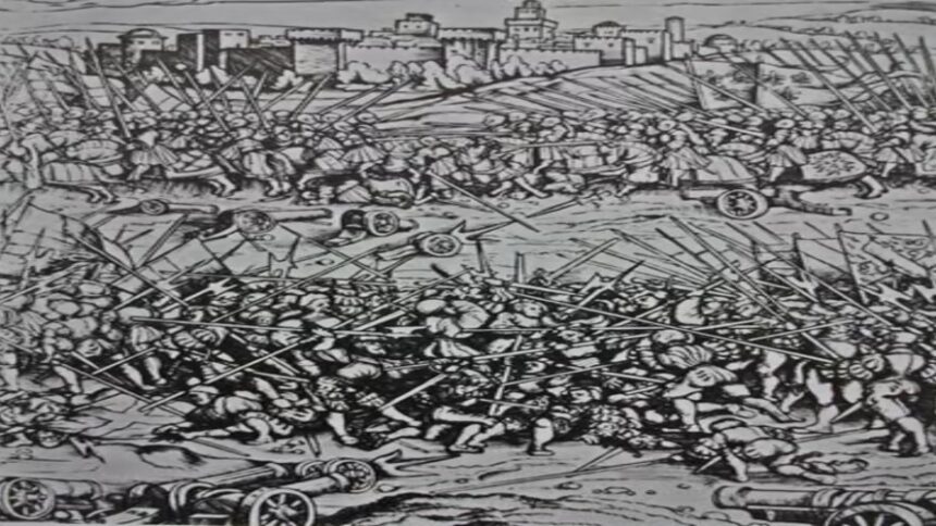 1512: Battle of Ravenna: French forces under Gaston de Foix defeat the Holy League in a major battle of the Italian Wars