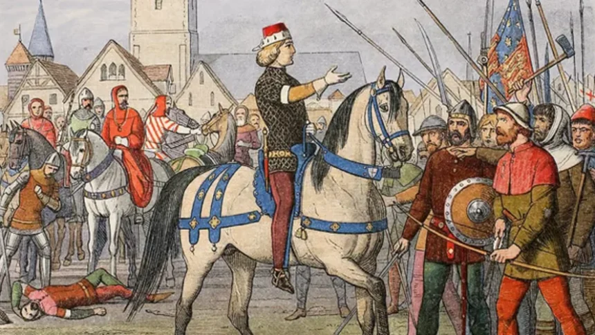 1381: Peasants’ Revolt: in England, rebels arrive at Blackheath