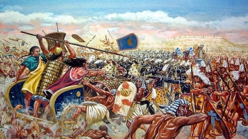 1457 BC: Battle of Megiddo: Egyptian forces of Thutmose III defeat a large Canaanite coalition under the King of Kadesh. First battle recorded with a reliable account.