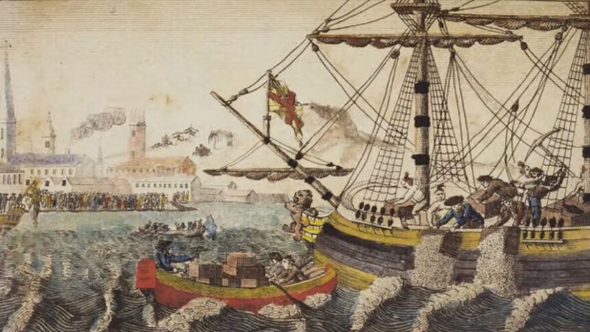 1773: Boston Tea Party incident – Sons of Liberty protesters throw tea shipments into Boston harbor in protest against British imposed Tea Act