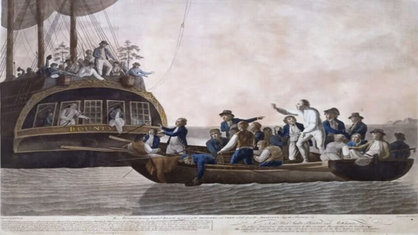1789: Fletcher Christian leads a mutiny on HMS Bounty against its captain William Bligh in the South Pacific