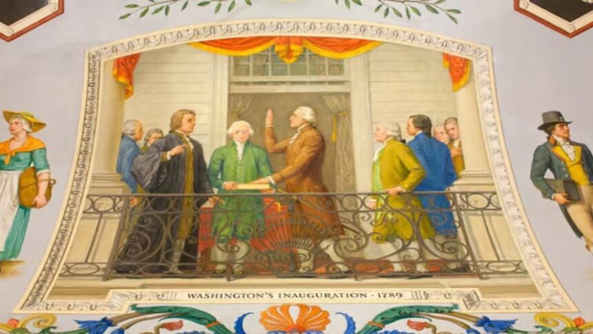 1789: George Washington is inaugurated as the first President of the United States of America at Federal Hall in NYC