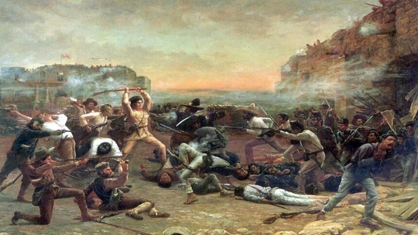 1836 Battle of the Alamo: After 13 days of fighting 1,500-3,000 Mexican soldiers overwhelm the Texan defenders, killing 182-257 Texans including William Travis, Jim Bowie and Davy Crockett