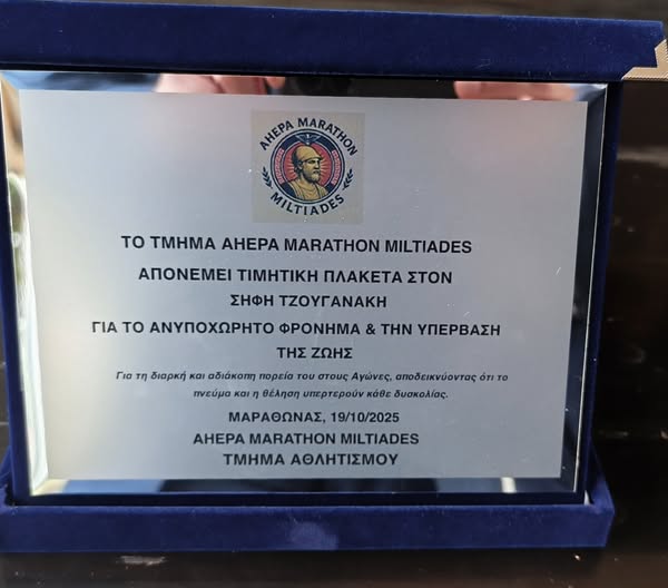 When emotion and pride meet, people create remarkable moments. The AHEPA MARATHON MILTIADES Chapter today paid tribute to marathon and track athlete Sifis Tzouganakis, celebrating his extraordinary journey of resilience and determination. Having undergone a kidney transplant, Tzouganakis continues to compete at a high level, driven by his ambition to break the world record in the 400 meters at the 2027 World Transplant Games in Brussels.