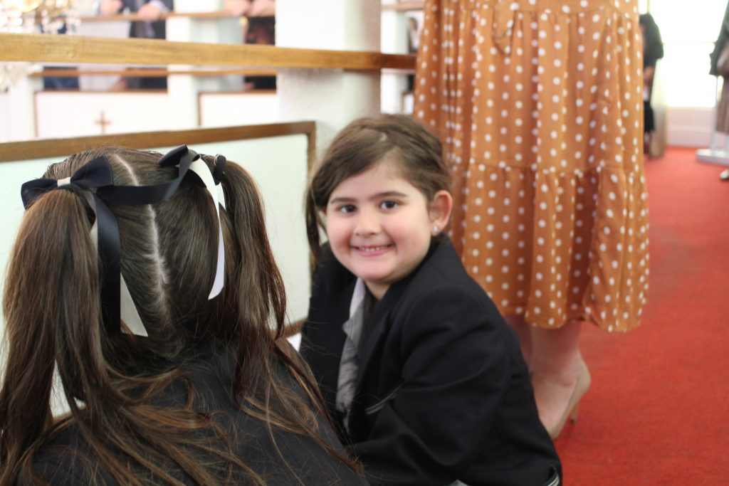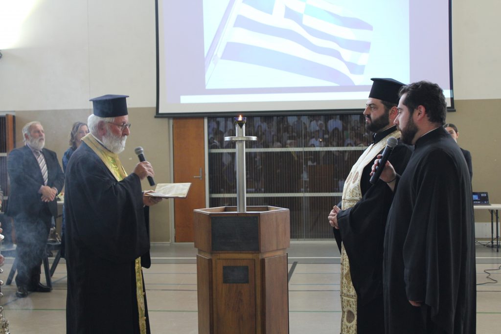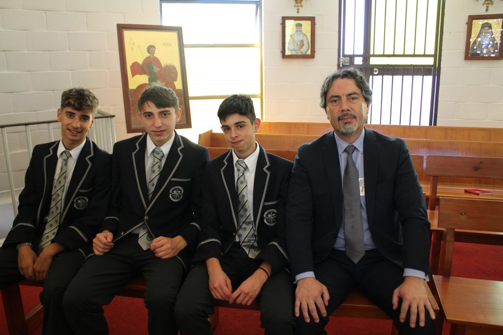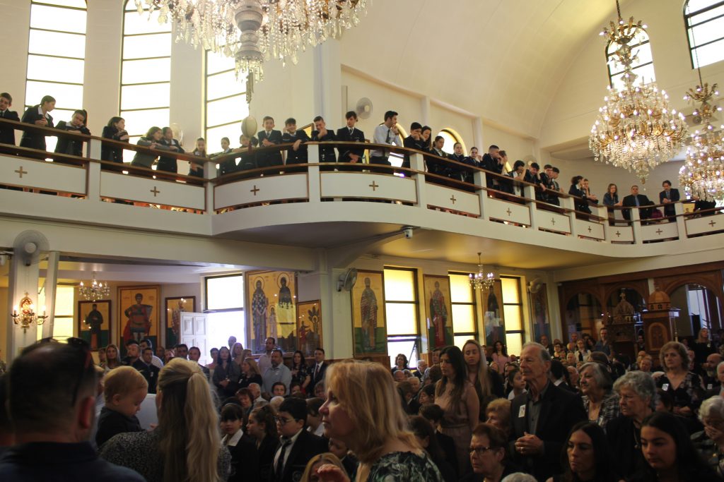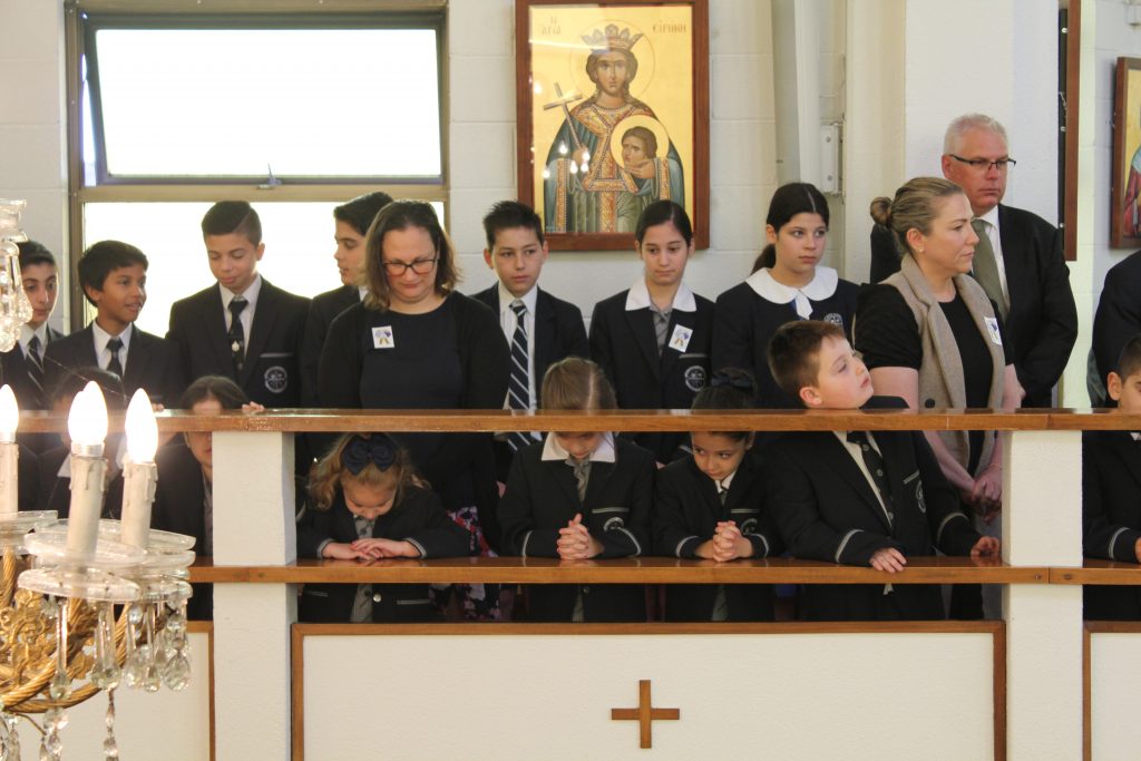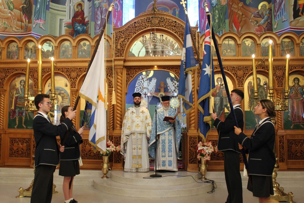 Four students dressed in their school uniforms stood at the front of the church holding the Greek, Cypriot and Australian flags, whilst other students from Kindergarten to Year 12 enjoyed the service from upstairs.