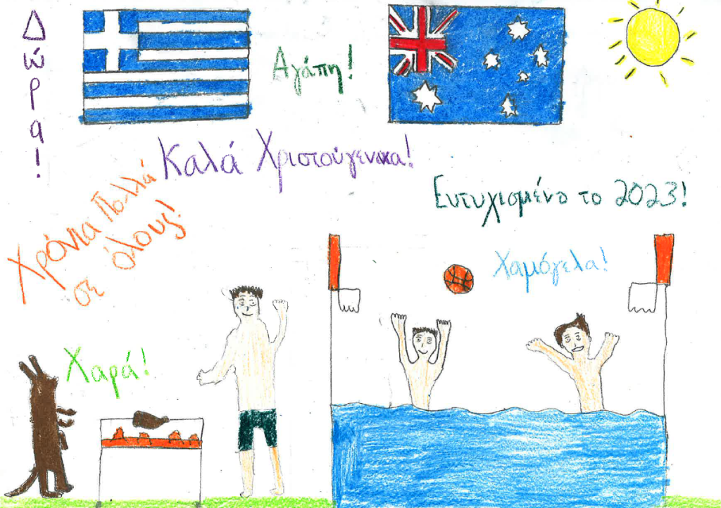 This mission was accomplished when The Greek Herald asked children aged 5 to 15 to help design the front cover of our special Christmas print edition on Friday, December 16. The entries we received were filled with colour, and many were focused on the themes of love, family and friends.