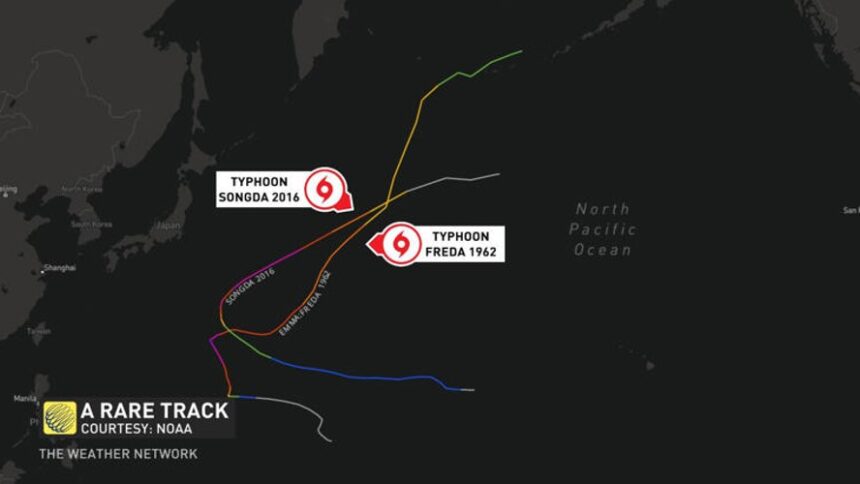 Some infamous examples include Typhoon Freda in 1962, remnants of which enhanced the catastrophic Columbus Day storm across the Pacific Northwest. More recently, Typhoon Songda in 2014 took a similar, peculiar trek northward. That storm grazed the Pacific Northwest, but its wind field remained compact and mainly offshore.