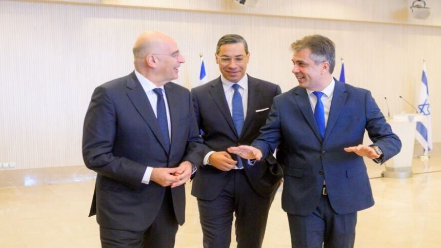 “We talked about the East Med pipeline, as you would expect us to do, and also the strategic importance of the Eurasian interconnector between Greece, Cyprus, Israel,” Dendias said, extending an invitation to Turkey – Greece’s neighbor and longtime regional rival – to join in as long as it heeds international law.