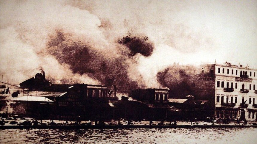 Katsos noted: “The Burning of Smyrna/Smyrna Catastrophe (Καταστροφή της Σμύρνης) refers to the deliberately set fire four days after Turkish forces entered and captured the port city of cosmopolitan Smyrna in Asia Minor and which completely destroyed its Hellenic and Armenian quarters. Its Muslim quarters escaped damage. The fire was started September 13 and extinguished September 22 in 1922. Turkish troops per eyewitnesses systematically cordoned off the Quay to contain the Hellenes and Armenians within their fire zone quarters and prevented them from fleeing.”
