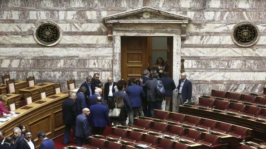 Government spokesman Pavlos Marinakis defended its tactics, arguing the majority remained in Parliament while the opposition “withdrew from a proposal it had submitted itself.”