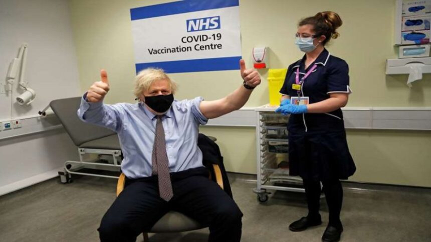 The prime minister, who is aged 56, got his first dose at London’s St Thomas’ Hospital, where he was treated in intensive care last April after contracting COVID-19.