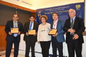 The last panel was dedicated to the Freedom of the Press. Kyriakos Pieridis, Journalist and Press Freedom Representative of AEJ and Hasan Kahvecioglou Turkish Cypriot journalist spoke about the current situation in Cyprus and its impact on peace and stability in the region and the role of the media. Speakers referred to Erdogan’s threats and ban on entry of journalists to Turkey. Esra Aygin and Katerina Gennari spoke about the bi-communal relationship of journalists in Cyprus. As they pointed out, the media in the occupied territories are fully controlled by Turkey. Sami Ozulu and Loukianos Lyritsas spoke about the challenges for media freedom and pluralism in Cyprus.
