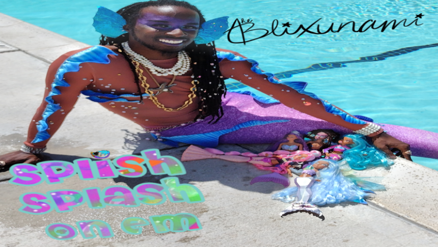 With his shimmering purple tail, waist-length hair and glittering eye- makeup, a professional merperson has become the latest man to challenge stereotypes and show that not all mermaids have blonde hair and blue eyes. On land, Eric Nova is your average “two-legged” from the US city of Atlanta, Georgia. But when he slips on his full body tail he becomes The Blixunami.