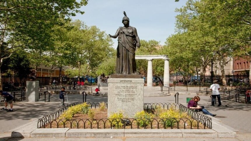 Located in Astoria, New York’s Greek-American neighborhood, this park was restored in 1990 as a locus for neighborhood gatherings and to create “a little bit of Athens in Astoria.”