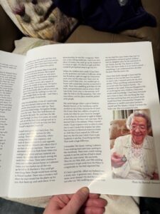 The story of the Queen and Olive, now both sadly deceased, provide a kind of chronological “thread”, or unofficial narrative, for the book. Earlier this week, some of Olive’s relatives attended the launch of the local history book which will be distributed to local libraries, schools, and care homes. Olive also got a special mention in one of the speeches at the launch.
