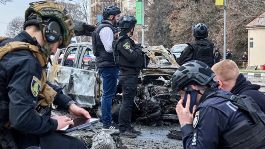 In the Zhytomyr region, west of Ukraine’s capital, Kyiv, rescuers had to search for survivors beneath the rubble of their homes as a whole line of houses was destroyed.