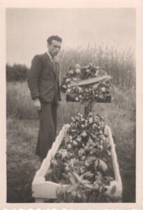 Willy came by one of these and also managed to acquire photos, including one of Fred’s temporary grave in Sint-Antelinks (around 1943) which shows members of the Belgian Resistance.