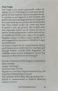 “In 2022, Dirk obtained a document that describes the origin of an unknown grave at the War Cemetery in Heverlee. The date of death and the coordinates corresponded with the temporary grave of Fred Tingle in our village.”