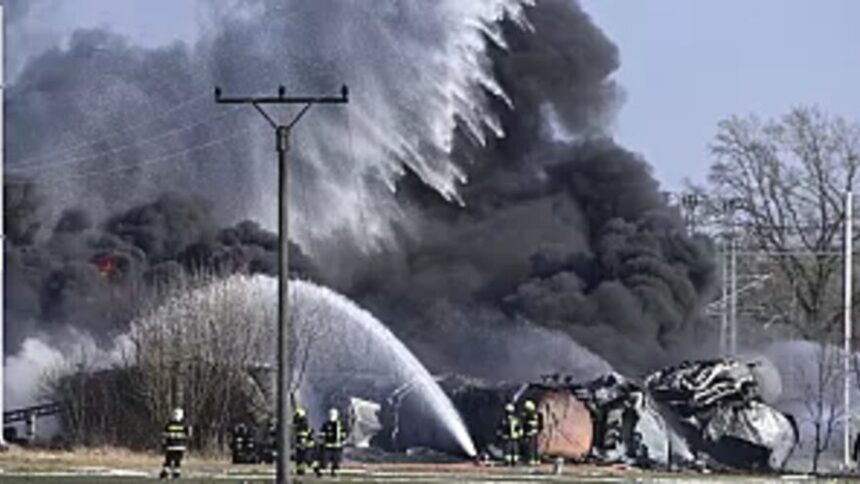 Most of the 17 carriages immediately caught fire after the accident. Some 350 tonnes of benzene leaked from the tankers carrying 1,020 tonnes, much of it into the groundwater.