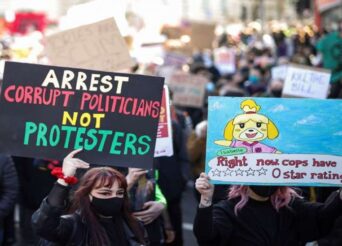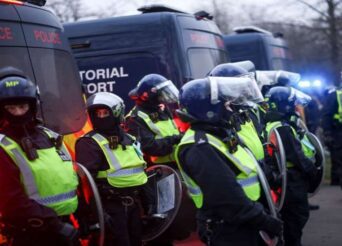 Police in London said on Saturday they arrested five people, and eight officers were injured, after disorder at large-scale protest against England’s remaining coronavirus restrictions, the mandatory use of masks and possible introduction of so-called vaccine passports.