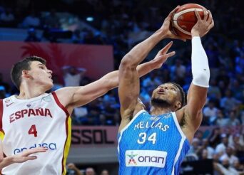 Greece topped its Eurobasket pool in Limassol with a hard-fought 90-86 victory over Spain, its jinx team, that saw the reigning European champion eliminated from the tournament on Thursday.