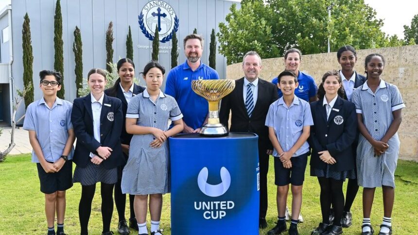 St. Andrew’s Grammar in Dianella has today hosted the first showcase of the United Cup trophy in Western Australia, marking the four-week countdown to the tournament’s kick-off.