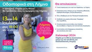 On the 13th and 14th of July at 18:00 switch on Thraki Net to watch “With Fenia” TV show which will showcaseall the beauties of Lemnos island. Don’t miss it!